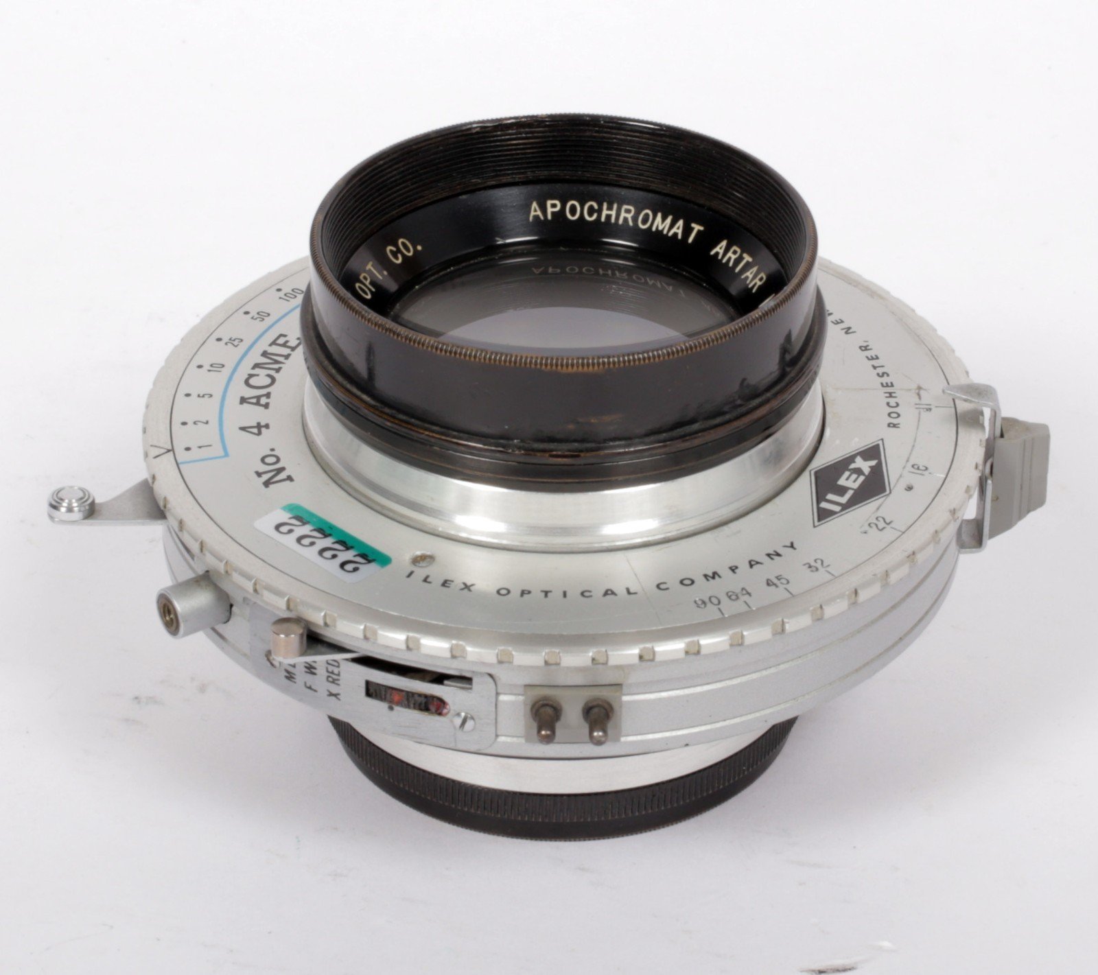 • Factory mounted in a synchro Ilex #4 shutter with a factory aperture scale