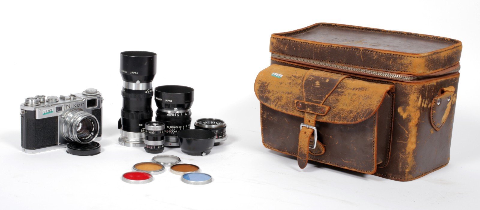 Nikon S2 35mm Rangefinder camera + 35mm 50mm 85mm 135mm lenses + case + FILTERS (#2133)
