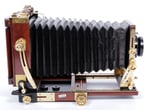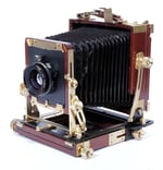 This Tachihara ultralight 4X5 camera is a small form factor, folding field 4X5 camera, a compact and light option for backpacking, while still offering excellent rigidity and a good suite of movements. This newer version, sold under Calumet's home brand is an improved design with many upgraded features such as Teflon washers, the best ground glass/fresnel combo available, larger movements and more stable hardware, retro movement on the rear standard and smooth action all around. Made of centuries old dried Japanese cherry wood, this is a true to testament to the incredible craftsmanship.