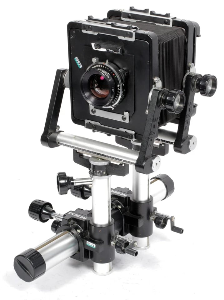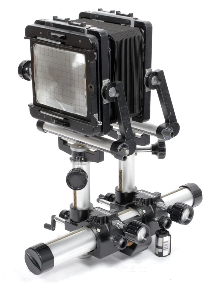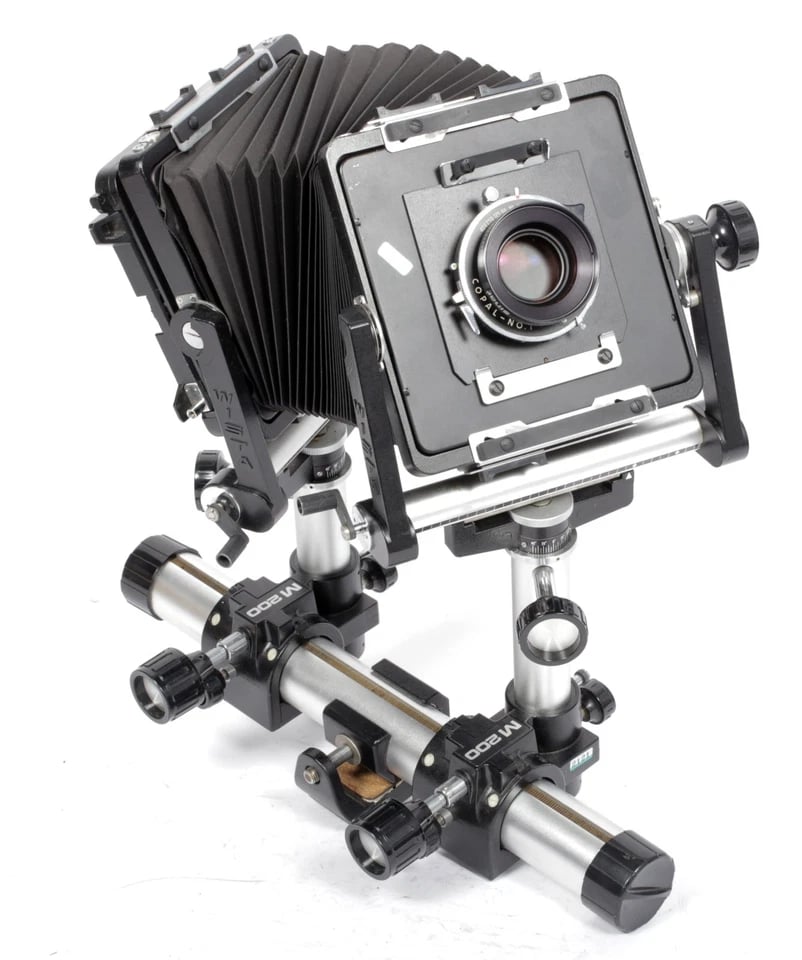 A fully articulating, superbly sturdy 4X5 monorail system camera. Mostly geared movements, excellent precision and control, this camera is a strong competitor to the Sinar P and Horseman L systems.
